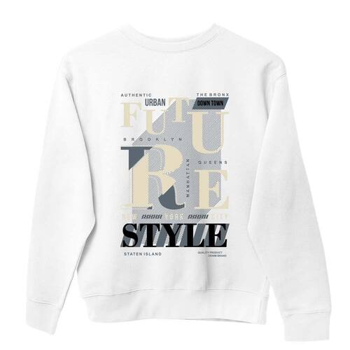 Moletom Careca Estampado Gola Redonda Unissex com Ribana Flanelado Manga Comprida Atletico Basico - Branco - M