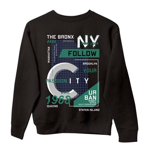 Moletom Casual Estampado Blusa Gola Careca Moderna Quentinho Punho Com Ribana Protege do Frio - Preto - P