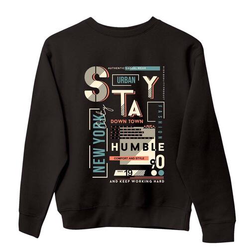 Moletom Estampado Moderno 50% Algodao 50% Poliester Jaqueta de Frio Punho e Gola de Ribana - Preto - GG