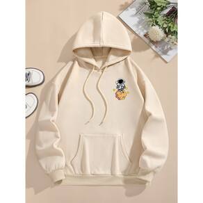 Moletom Feminino Casual com Capuz ElaShopp - Bege - P