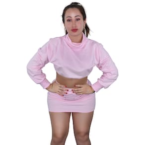 Moletom Feminino Conjunto Saia Justa + Blusinha - Rosa - G