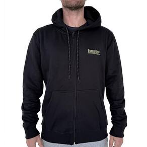 Moletom Hurley Aberto 250g, estampa frontal, capuz com cordão, bolso canguru com etiqueta e etiquetas personalizadas.