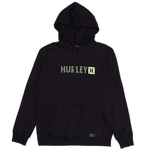 Moletom Hurley felpado, 250g, estampa frontal, capuz com cordão e bolso Canguru com etiqueta.
