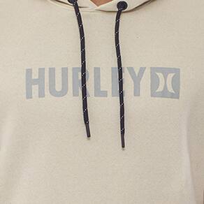 Moletom Hurley fechado 250g, com estampa frontal, capuz com cordão, bolso canguru com etiqueta bandeira e etiquetas personalizadas.