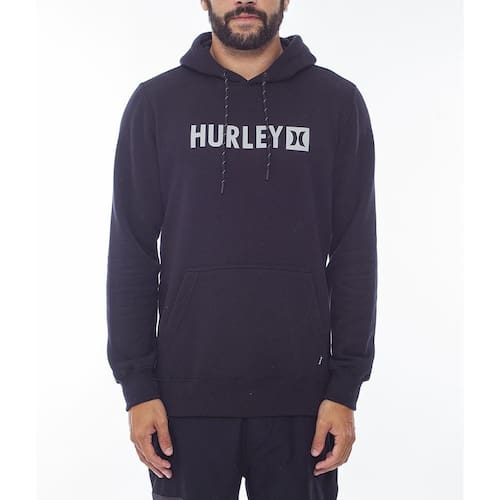 Moletom Hurley fechado 250g, com estampa frontal, capuz com cordão, bolso canguru com etiqueta bandeira e etiquetas personalizadas.