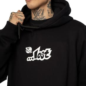 Moletom Lost com capuz, felpado, estampa frontal e etiquetas personalizadas.