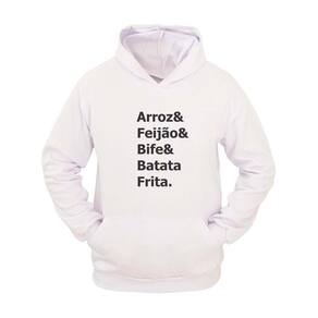 Moletom Masculino Canguru Capuz Estampa Bife & Batata - Branco - G