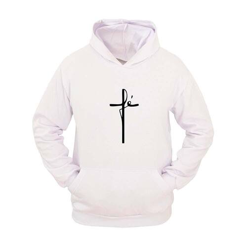 Moletom Masculino Canguru Com Capuz Estampa Fé Conforto - Branco - G