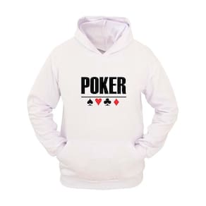 Moletom Masculino Canguru Com Capuz Estampa Poker - Branco - GG