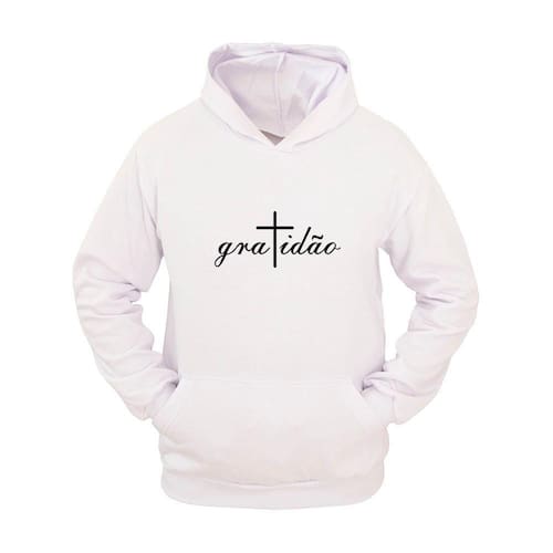 Moletom Masculino Canguru Estampa Gratidão com Capuz - Branco - G