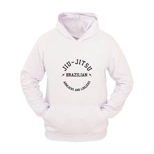 Moletom Masculino Canguru Estampa Jiu Jitsu Arm Lock Capuz - Branco - G