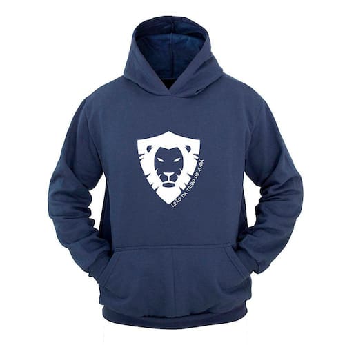 Moletom Masculino Canguru Estampa Leão de Judá com Capuz - Azul Claro - P