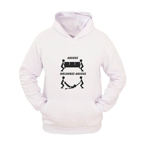 Moletom Masculino Canguru Estampa Melhores Amigos com Capuz - Branco - GG