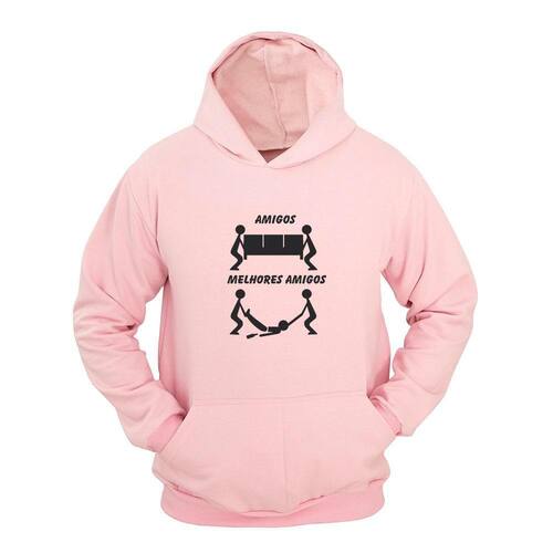 Moletom Masculino Canguru Estampa Melhores Amigos com Capuz - Rosa Claro - GG