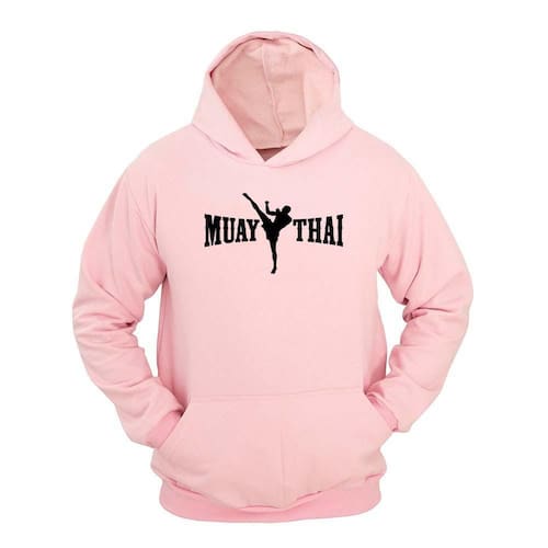 Moletom Masculino Canguru Estampa Muay Thai Com Capuz - Rosa Claro - G