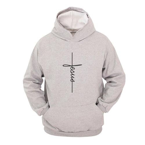 Moletom Masculino Canguru Estampa Religião com Capuz - Cinza - GG