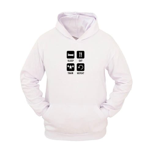 Moletom Masculino Canguru Flanelado Leep Eat Train Repeat - Branco - G