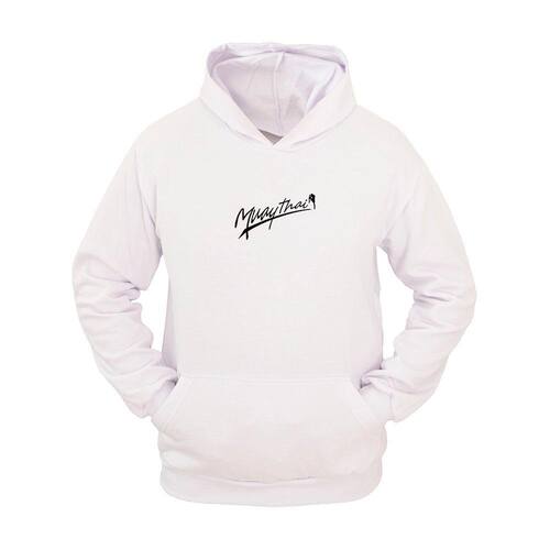 Moletom Masculino Canguru Flanelado Muay Thay Estampado - Branco - P