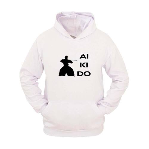 Moletom Masculino Capuz Estampa Aikido Bolso Canguru Moderno - Branco - GG