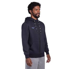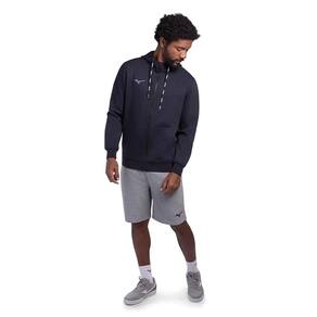 O Moletom Masculino Mizuno Zipper é feito com um tecido macio com fleece interno, proporcionando o melhor conforto térmico. Sua modelagem ampla e o zíper frontal permitem que ele transite do treino para o lazer, mantendo-o sempre protegido. Possui capuz com ajuste de cordão e bolsos estilo canguru, que mantêm as mãos protegidas do frio. A assinatura da peça fica por conta do Logo Run bird em silicone.