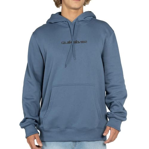 Moletom QuikSilver fechado 270g, estampa em relevo centralizada na frente e etiqueta aplicada no capuz.