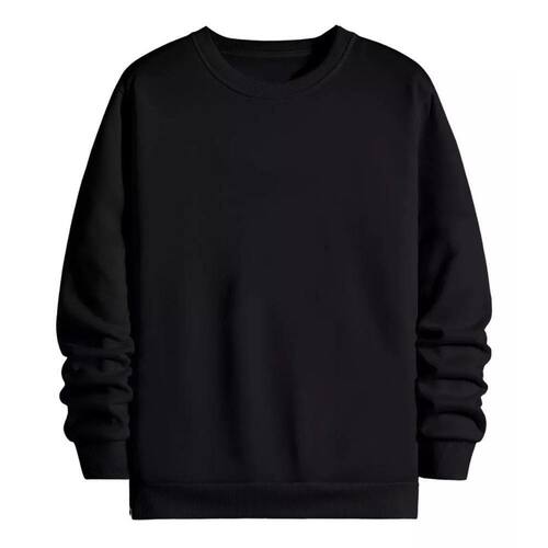 Moletom sem capuz sem bolso gola careca Fechado Liso Inverno - Preto - M