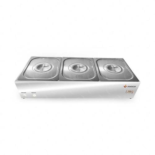 Molheira salsicheira elétrico cubas 1/2 - venâncio Descrição e característica técnica: - equipamento de acordo com a portaria 371/09 do inmetro, com selo de conformidade expedido pelo mesmo, cubas de acordo com o padrão mundial gastronorm de 1/2, podendo opcionalmente serem Substituídas por duas pequenas. - sistema de aquecimento das cubas é provido através de resistência posicionada embaixo das mesmas, sendo que sempre será aquecida a cuba gn. - modelo 127v ou 220v com resistência aletada dissipada, que funciona sem utilizar água, e com individual liga/desliga para cada resistência. - corpo externo em aço inoxidável. - cubas e tampas estampadas em aço inoxidável. - modelo elétrica - modelos m2e - 2 cubas , m3e 3 cubas . - resistência monofásica posicionado abaixo das cubas, sendo sempre 1 cuba quente e outra ambiente: M2e- 2 cubas 1 com resistência e outra ambiente . M3e- 3 cubas 2 com resistência e outra ambiente . - cuba : 8cm a x 23,5cm l x 12,5p Não tem banho maria. - consumo: 0,60 kw/h - total - potência: 2 x 300watts. - peso líquido: 6 kg - peso bruto: 5,6 kg - medidas externas: 20cm a x 84cm l x 37cm p - medidas embalagem:21cm a x 87cm l x 42cm p Marca: Não Informado Ean: 7893956004399