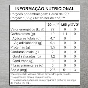 Feito com farinha de trigo enriquecida, o molho é livre de gorduras trans, garantindo uma opção mais saudável para suas criações culinárias. Embora não seja vegano, sua versatilidade permite que seja utilizado em uma ampla gama de pratos, atendendo a diferentes paladares e preferências.