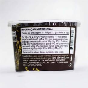 Água, açúcar refinado, alho negro, vinagre de álcool, sal e pimenta dedo de moça. NÃO CONTÉM GLÚTEN.