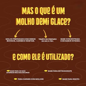 Eleve o seu prato com um molho que certamente proporcionará aos seus clientes uma refeição inesquecível. Molho preparado com ossos bovinos, carnes e vegetais, base concentrada com sabor intenso.