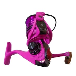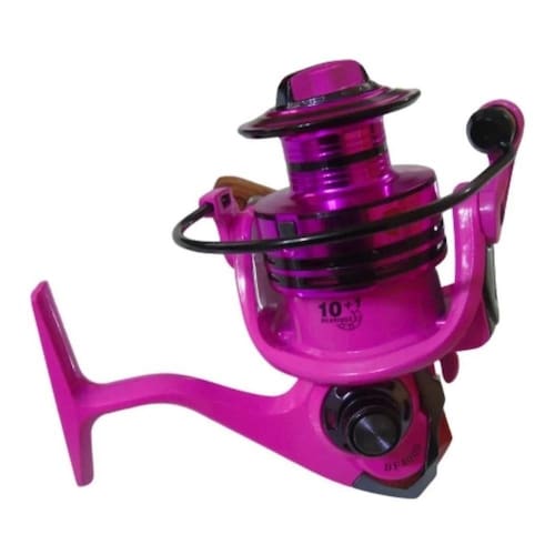 • fabricante: debao • modelo: bf 5000 • material do corpo: grafite • material do carretel: alumínio • manivela: intercambiável (direito ou esquerdo) • knob: madeirado • sistema anti - reverso • fricção dianteira • sistema totalmente balanceado por computador • sistema de super arrasto • eixo principal reforçado • rolamentos: 10 + 1 rolete • velocidade de recolhimento: 5.2:1 • capacidade de linha: 0,35mm/190m 0,40mm/165m 0,50mm/120m • peso: 310 gramas. Cores rosa
