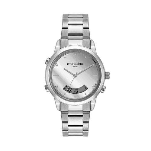 Especificações técnicas do Relógio Mondaine Prata Feminino 32590L0Mvne2: - Marca: Mondaine - Gênero: Feminino - Tipo de mostrador: Analógico e Digital - Tipo de fecho: Dobrável - Cor da caixa: Prata - Cor do mostrador: Prata - Cor da pulseira: Prata - Material da caixa: Metal - Material da pulseira: Aço - Largura da caixa: 4,0 cm - Resistência à água: 5 ATM 50m