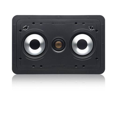 Utilizando dois controladores C-CAM de 4'' montados em um tweeter C-CAM, os controladores oferecem uma área de irradiação maior trabalhando em conjunto do que um único driver de graves de 6".