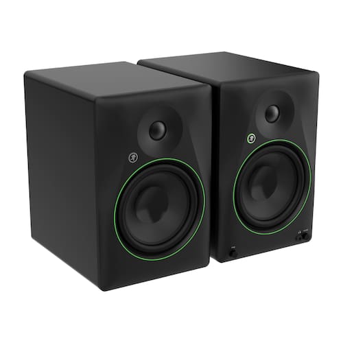 Monitores de estúdio Mackie CR8BT de 8 polegadas com Bluetooth, controle de tom ajustável, entradas TRS, RCA e 3,5 mm, e saída de fone de ouvido integrada.Tipo de Tela