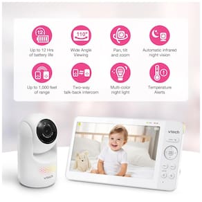 O Monitor de Vídeo Digital para Bebês VTech Advanced HQ Max 7 é um equipamento de alta qualidade e eficiência que oferece uma visão clara e detalhada do seu bebê. Com uma tela LCD colorida, você pode ver facilmente cada pequeno movimento e expressão com imagens nítidas em qualquer ângulo. Além disso, a câmera para bebês é equipada com zoom panorâmico e inclinado com visão ampla de 110 graus, permitindo até 4X de zoom da unidade dos pais.