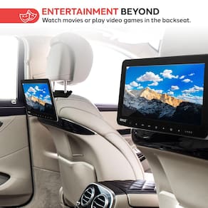 - Reprodutor de mídia de 26,7 cm: transforme um passeio chato em uma experiência divertida com este sistema de reprodutor multimídia de TV para encosto de cabeça de veículo. Ampla tela LCD de alta resolução com leitor de CD DVD de carregamento superior para dar a você entretenimento completo enquanto estiver na estrada