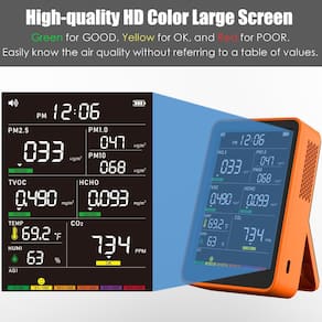 - ?Sistema de sensor de alta precisão e tela grande HD?: O sistema de sensor de alta precisão coleta e analisa continuamente os dados do ar a cada 3 segundos, fornecendo atualizações constantes sobre a qualidade do ar em seu espaço. Uma tela colorida clara e avançada melhora a legibilidade e adiciona um toque de sofisticação ao seu ambiente.