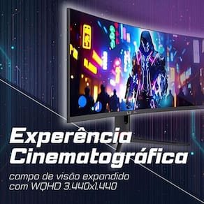 Experiência Cinematográfica: A proporção ultrawide 21:9 e a resolução WQHD 3440 x 1440 criam um campo de visão expandido, ideal para jogos, filmes e multitarefas. É como ter duas telas em uma, com uma área de trabalho gigantesca para otimizar sua produtividade.