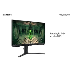 Monitor Gamer Samsung Odyssey G40 25" Preto LS25BG400ELXZDMonitor Gamer Samsung Odyssey G40 25", FHD, 240 Hz, 1ms, com ajuste de altura, HDMI, DP, Gsync, Freesync, Preto, Série G40Resolução FHD e painel IPS. Agora você pode ver os jogos como nunca antes. O painel IPS oferece cores claras e um amplo ângulo de visão de 178º para maior clareza a partir de qualquer posição. Com mais pixels e maior profundidade, os jogos estão mais próximos da realidade do que nunca. 240Hz de taxa de atualização & 1ms de tempo de resposta. Velocidade nas cenas. A taxa de atualização de 240Hz elimina o atraso para uma jogabilidade emocionante com ação ultra-suave. Ataque os inimigos assim que os vê-los com um tempo de resposta de 1ms e quadros sem borrão.TELATamanho da Tela 25"Tipo de Painel IPSCurvatura da Tela FlatBrilho (típico) 400 cd/m²Contraste Estático 1000:1Resolução 1,920 x 1,080Proporção de Tela 16:09Tempo de Resposta 1ms (GTG)Taxa de Atualização Max 240HzÂngulo de Visão (Horizontal / Vertical) 178°/178°Suporte de Cores Max 16.7MENTRADA DE SINALD-Sub NãoDVI NãoDual Link DVI NãoDisplay Port 1 EAHDMI 2 EAUSB NãoEntrada de Audio NãoFone de Ouvido NãoÁUDIOSpeaker: NãoRECURSOS ESPECIAISEco Saving Plus, Eco Light Sensor, Flicker Free, FreeSync PremiumCertificação Windows: Windows 10DESIGNCor: PretoTipo de suporte SIMPLEBase de altura ajustável N/AInclinação Ajustável -3.0°(±2.0°) ~ +22.0°(±2.0°)Rotação (esquerda/direita) -15.0°(±2.0°) ~ +15.0°(±2.0°)Wall Mount - VESA (mm) 100 x 100POWERFonte de Alimentação AC 100-240VConsumo de Energia (Stand-by) N/ATipo Adaptador ExternoACESSÓRIOSCabo HDMIDIMENSÕESProduto com Base (LxAxP) 55,8 x 55,2 x 24,4 cmProduto sem Base (LxAxP) 55,8 x 34,1 x 85,4 cmEmbalagem (LxAxP) 62,8 x 16,3 x 42,9 cmPESOProduto com Base 4.5 kgProduto sem base 2.8 kgPeso Bruto 6.0 kgGARANTIA: 12 Meses