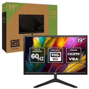 Descrição do Produto: Tenha mais qualidade visual e versatilidade em sua estação de trabalho com o Monitor LED 19 L2F Widescreen, um equipamento ideal para uso doméstico, ou educacional. Com resolução HD e proporção widescreen 16:9, este monitor proporciona uma experiência visual confortável, com imagens nítidas e cores vivas para realizar tarefas com maior produtividade e qualidade. O modelo conta com entradas HDMI e VGA, garantindo compatibilidade com diversos dispositivos, como computadores, notebooks, de TV digital e consoles. Seu design moderno, com acabamento preto e bordas finas, proporciona uma aparência elegante, ideal para ambientes corporativos e residenciais. Além disso, é um equipamento bivolt automático, oferecendo praticidade na instalação e segurança contra variações de tensão. A base estável permite uso seguro em diversas superfícies, e seu tamanho compacto se ajusta facilmente a espaços reduzidos. Visão Geral: Tela de 19 com proporção widescreen 16:9 Resolução HD: ideal para navegação, vídeos e documentos Entradas HDMI e VGA: conectividade com diversos dispositivos Design compacto com estrutura leve e elegante Alimentação bivolt automática: praticidade e segurança Acabamento na cor preta com base firme e estável Benefícios para o Usuário: Excelente opção custo-benefício para home office, estudos ou Compatível com notebooks e desktops antigos e modernos Ocupa pouco espaço e combina com qualquer ambiente Fácil instalação, com suporte aos principais tipos de conexão Qualidade de imagem nítida e visual confortável Ficha Técnica: Marca: L2F Modelo: Widescreen 19 Tamanho da Tela: 19 polegadas Resolução: HD 1366 x 768 Proporção da Tela: 16:9 Conectividade: HDMI, VGA Voltagem: Bivolt automático 110/220V Cor: Preto Tipo de painel: LED Tempo de resposta: Aproximadamente 5 ms Brilho: 200 cd/m aproximado Contraste: 600:1 típico Peso Líquido: Aproximadamente 1,9 kg Peso Bruto: Aproximadamente 2,5 kg Dimensões da embalagem AxLxP : 36 x 47 x 12 cm Homologação Anatel: 061982314497 Marca: Não Informado Ean: 7891212004497