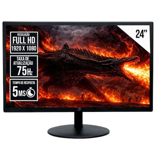 O monitor Brazil PC 24WR-75 24" é a escolha ideal para quem busca qualidade de imagem, desempenho e excelente custo-benefício em um monitor Full HD 24 polegadas. Com resolução 1920x1080, taxa de atualização de 75Hz e tempo de resposta de 5ms, este monitor widescreen 24" oferece imagens mais fluidas e nítidas, sendo perfeito para trabalho, estudos, entretenimento e uso diário. Seu design moderno na cor preta com base redonda se adapta facilmente a qualquer ambiente, enquanto as conexões HDMI e VGA garantem compatibilidade com diversos dispositivos. Além disso, conta com suporte VESA para instalação em parede, proporcionando mais versatilidade e organização no seu espaço.