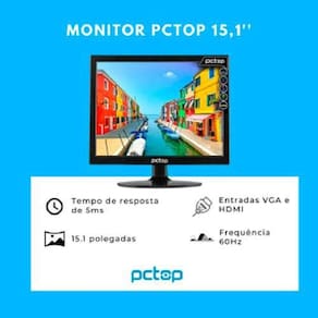 Monitor pctop pc1510 15.1p led 60hz hdmi vga - 9036314-01 Monitor pctop 15,1 led vga hdmi preto pc1510 Características: Pctop Customized Vga +hdmi Tamanho do painel: 15.1 (38.35cm) Proporção da tela: tela quadrada 4:3 Screen technology (panel typ): (tipo de tela) led Ângulo de visão: 90h / 60v (melhor área de visualização, exibir mais conteúdo ) Resolução hd: 1024768 Taxa de atualização: 50/60hz Tamanho do ponto: 0.217mm Idioma: 12 línguas Display color: 16.7m Brilho da tela: 250cd/m2 Tempo de resposta: 5ms Relação de contraste: 1000:1 (clear and sharp vision) Modelo: potência integrada Voltage: ac 100-240v; 50/60hz Consumo de energia: 8w Stand-by: