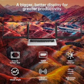- Monitor duplo com eficiência dupla - Com telas generosas de 14 polegadas, superando as opções menores de 11,6 polegadas ou 13 polegadas, nossos monitores oferecem amplo espaço de visualização. Projetados para se alinharem facilmente às telas de notebooks convencionais, eles se integram perfeitamente para uma configuração coesa. Eleve sua experiência visual com a tela dupla, perfeita para profissionais de TI, criadores de conteúdo, comerciantes e jogadores. Aumente a produtividade e a imersão com a capacidade de triplo monitor — o aprimoramento definitivo para trabalho e lazer.