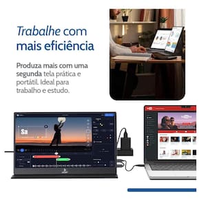 Monitor portátil touch screen 15.6 full hd ips usb-c hdmi ultra fino gamer notebook pc console trabalho Monitor portátil touch screen 15.6 Full hd ips usb-c hdmi Ultraleve e compacto Monitor portátil full hd: mais produtividade e entretenimento onde quiser Complete com uma capa inteligente destacável que também funciona como suporte, este monitor oferece proteção abrangente enquanto mantém a elegância do design. E com itens inclusos como adaptador de energia e cabos para diferentes tipos de conexão, sua experiência de uso é totalmente facilitada. Por que escolher este monitor portátil Portabilidade total: ideal para trabalho remoto, viagens e reuniões externas Toque responsivo: facilidade de uso com touch screen intuitivo Alta compatibilidade: funciona com uma ampla variedade de dispositivos Experiência imersiva: tela ips com núcleos vivas e som estéreo integrado Modos de uso versáteis: utilize no modo estendido, espelhado ou retrato conforme sua necessidade Compre agora e transforme sua experiência com um monitor portátil de alta performance Principais características: Resolução full hd 1920x1080p Imagens nítidas e elaboradas Tela ips touch screen Interatividade e precisão ao toque 2 entradas usb-c e 1 hdmi Conectividade rápida e versátil Compatível com notebook, pc, celulares, consoles gamer Design ultrafino 4.88mm e leve 700g Perfeito para levar a qualquer lugar Modos de exibição: espelhado, estendido e retrato Adaptação para qualquer uso Som estéreo integrado Áudio de qualidade para vídeos, jogos e chamadas Máxima conectividade: plug & play Conecte-se a notebooks, celulares, tablets, consoles de jogos e pcs sem complicações. Com duas portas usb-c e uma hdmi , é compatível com diversos dispositivos sem necessidade de drivers adicionais. Para notebooks e pcs: expanda sua área de trabalho e aumente a produtividade Para consoles gamers: experiência gamer portátil em full hd Para celulares e tablets: transforme seu smartphone em uma tela maior para vídeos e apresentações Especificações técnicas: Tela: 15,6 Ips full hd 1920x1080p Touch screen: sim requer thunderbolt 3 ou usb-c 3.1 Taxa de atualização: 60hz Conectividade: 2x usb-c, 1x hdmi Alto-falantes estéreo integrado Proteção ocular: reduz a fadiga visual Ângulo de visão horizontal: 178 Brilho: 250cd/m Tempo de resposta: 5ms High-dynamic range: hdr400 Relação de contraste: 800:1 Srgb 72% Dimensões: 355,2mm x 228mm x 4,88mm espessura Peso aproximado: 700g Compatibilidade:computadores e celulares com saída usb-c dp Itens inclusos: 01 monitor portátil 15.6 Full hd touch 01 capa protetora smartcase também funciona como suporte 02 cabos usb-c 01 cabo hdmi 01 fonte de alimentação 01 manual de instruções Importante; de qualidade 90 dias contra defeitos de fabricação Todos os nossos produtos passam por um rigoroso controle de qualidade e são testados antes do envio , garantindo que você receba um item 100% funcional. Homologação Anatel: 109062214103