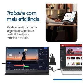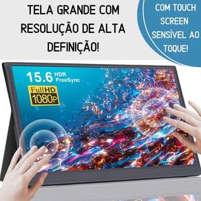 Monitor portátil touch screen 15.6 full hd ips usb-c hdmi ultra fino gamer notebook pc console trabalho Monitor portátil touch screen 15.6 Full hd ips usb-c hdmi Ultraleve e compacto Monitor portátil full hd: mais produtividade e entretenimento onde quiser Complete com uma capa inteligente destacável que também funciona como suporte, este monitor oferece proteção abrangente enquanto mantém a elegância do design. E com itens inclusos como adaptador de energia e cabos para diferentes tipos de conexão, sua experiência de uso é totalmente facilitada. Por que escolher este monitor portátil Portabilidade total: ideal para trabalho remoto, viagens e reuniões externas Toque responsivo: facilidade de uso com touch screen intuitivo Alta compatibilidade: funciona com uma ampla variedade de dispositivos Experiência imersiva: tela ips com núcleos vivas e som estéreo integrado Modos de uso versáteis: utilize no modo estendido, espelhado ou retrato conforme sua necessidade Compre agora e transforme sua experiência com um monitor portátil de alta performance Principais características: Resolução full hd 1920x1080p Imagens nítidas e elaboradas Tela ips touch screen Interatividade e precisão ao toque 2 entradas usb-c e 1 hdmi Conectividade rápida e versátil Compatível com notebook, pc, celulares, consoles gamer Design ultrafino 4.88mm e leve 700g Perfeito para levar a qualquer lugar Modos de exibição: espelhado, estendido e retrato Adaptação para qualquer uso Som estéreo integrado Áudio de qualidade para vídeos, jogos e chamadas Máxima conectividade: plug & play Conecte-se a notebooks, celulares, tablets, consoles de jogos e pcs sem complicações. Com duas portas usb-c e uma hdmi , é compatível com diversos dispositivos sem necessidade de drivers adicionais. Para notebooks e pcs: expanda sua área de trabalho e aumente a produtividade Para consoles gamers: experiência gamer portátil em full hd Para celulares e tablets: transforme seu smartphone em uma tela maior para vídeos e apresentações Especificações técnicas: Tela: 15,6 Ips full hd 1920x1080p Touch screen: sim requer thunderbolt 3 ou usb-c 3.1 Taxa de atualização: 60hz Conectividade: 2x usb-c, 1x hdmi Alto-falantes estéreo integrado Proteção ocular: reduz a fadiga visual Ângulo de visão horizontal: 178 Brilho: 250cd/m Tempo de resposta: 5ms High-dynamic range: hdr400 Relação de contraste: 800:1 Srgb 72% Dimensões: 355,2mm x 228mm x 4,88mm espessura Peso aproximado: 700g Compatibilidade:computadores e celulares com saída usb-c dp Itens inclusos: 01 monitor portátil 15.6 Full hd touch 01 capa protetora smartcase também funciona como suporte 02 cabos usb-c 01 cabo hdmi 01 fonte de alimentação 01 manual de instruções Importante; de qualidade 90 dias contra defeitos de fabricação Todos os nossos produtos passam por um rigoroso controle de qualidade e são testados antes do envio , garantindo que você receba um item 100% funcional. Homologação Anatel: 109062214103 Marca: Não Informado