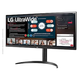 O monitor LG UltraWide™ 21:9 tem resolução Full HD (2560x1080) e oferece 33% mais espaço de tela comparado a monitores convencionais. Aproveite a tela para ver mais relatórios de uma vez durante a video-chamada.