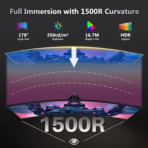 - Monitor de jogos curvo 1500R: o monitor curvo 1500R provou adicionar um toque envolvente ao jogar ou assistir filmes, ajudando a preencher nossa visão periférica, ampliando o campo de visão em maior extensão. O monitor curvo oferece a máxima imersão, envolve totalmente sua vida em todos os aspectos.