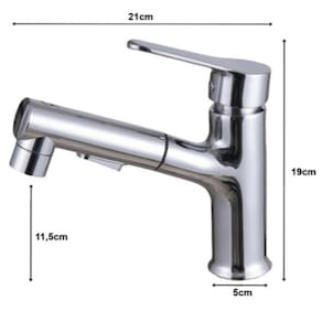 Design Inovador com Bica Extensiva Pull-Out: A funcionalidade encontra a beleza com uma bica extensível que oferece versatilidade total, facilitando tarefas diárias como lavar o rosto ou escovar os dentes, proporcionando uma experiência sem respingos e confortável. Saída de Água Inovadora: Um destaque único desta torneira é a saída de água no topo, perfeita para uma limpeza eficiente e prática do rosto ou ao escovar os dentes, garantindo que cada uso seja uma experiência refrescante. Com ducha de mão extraível , é perfeita para lavar os cabelos . Instruções de Limpeza: A limpeza dos metais podem ser feitas apenas com água, um pano macio e sabão neutro. Não é aconselhável usar nenhum produto abrasivo, por exemplo: palha de aço, polidor de metais, etc.