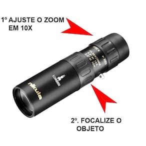 Monóculo Luneta de ótima qualidade e longo alcance, com alcance aproximado de até 15km de distância e ampliação de até 30x. Fácil de operar. Seu corpo emborrachado, fornece segurança e comodidade durante o uso. Com estojo para armazenamento e alça de transporte, é ideal para carregá-lo para onde for necessário: corrida, acampamento, teatro, observações de campo e muito mais. Inclui pano de limpeza para manter a lente limpa e sem arranhões.