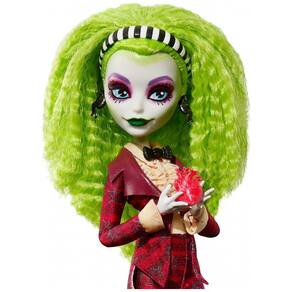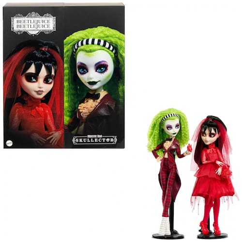 Este conjunto apresenta as icônicas personagens Beetlejuice e Lydia Deetz em uma versão estilizada da linha Skullector da Monster High, em roupas que remetem à cena do casamento do filme Beetlejuice (1988). Cada boneca mede cerca de 25 cm (10 a 12 polegadas) e conta com 11 pontos de articulação para diversas poses.